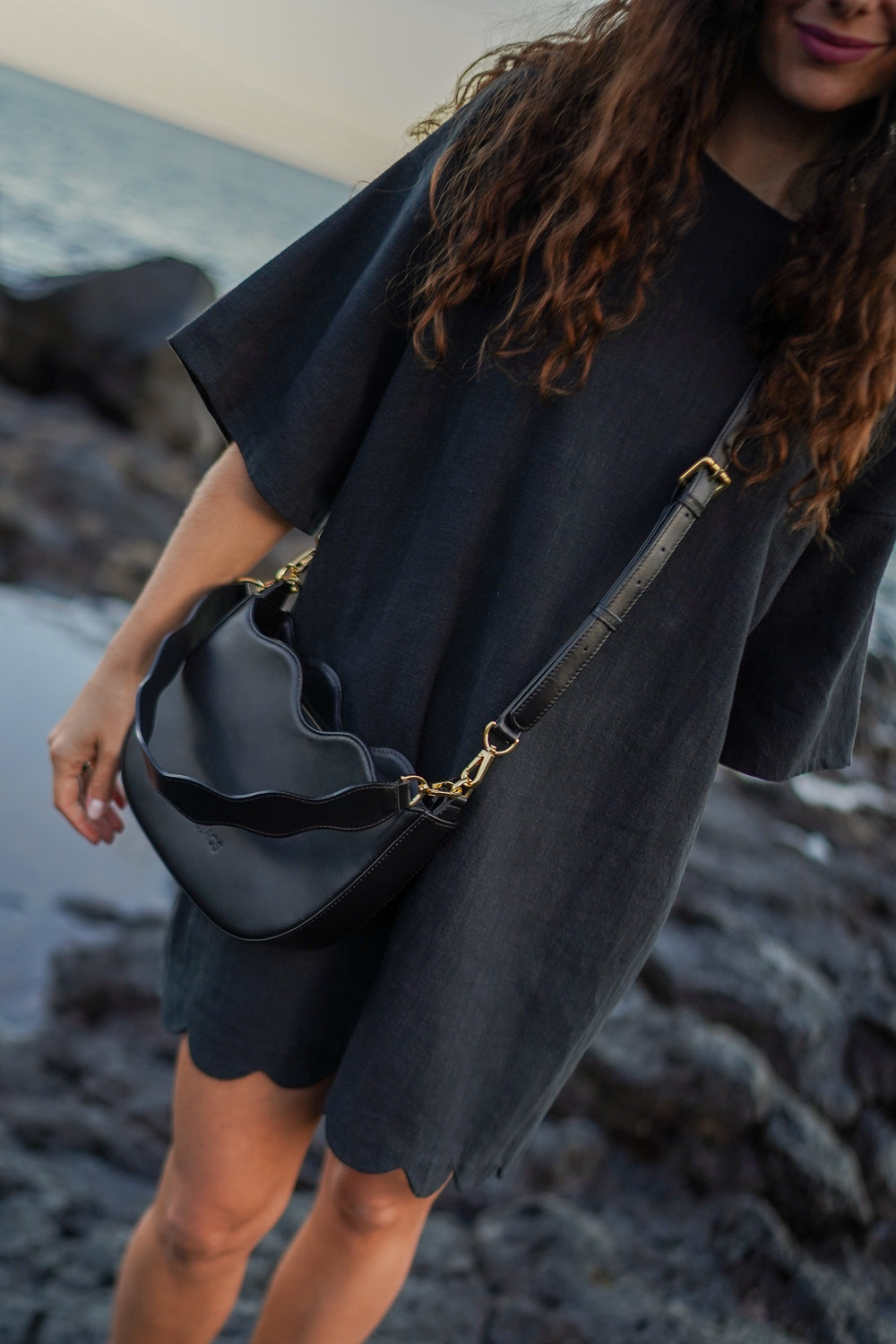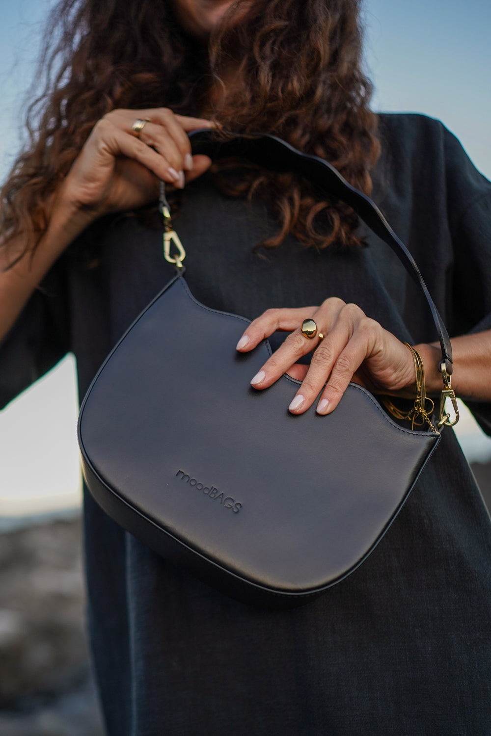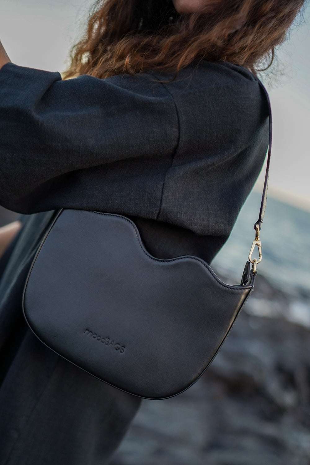 moodBAGS - to tutaj w 2018 roku zaczyna się moja historia okuta w piękne welurowe skóry. Projekty z szuflady ujrzały światło dzienne, a ja nabrałam rozpędu, o jakim wcześniej nie śniłam! To tutaj znajdziesz autorskie kształty, a w nich wspólny mianownik. Coś, co łączy je wszystko. Kształty zaklęte w płatkach kwiatów, dłońmi polskich rzemieślników. Dzięki obłym elementom każdy z modeli - pasek, buty, torebki, portfele - można ze sobą dowolnie łączyć, by wyglądały stylowo, z charakterem.
