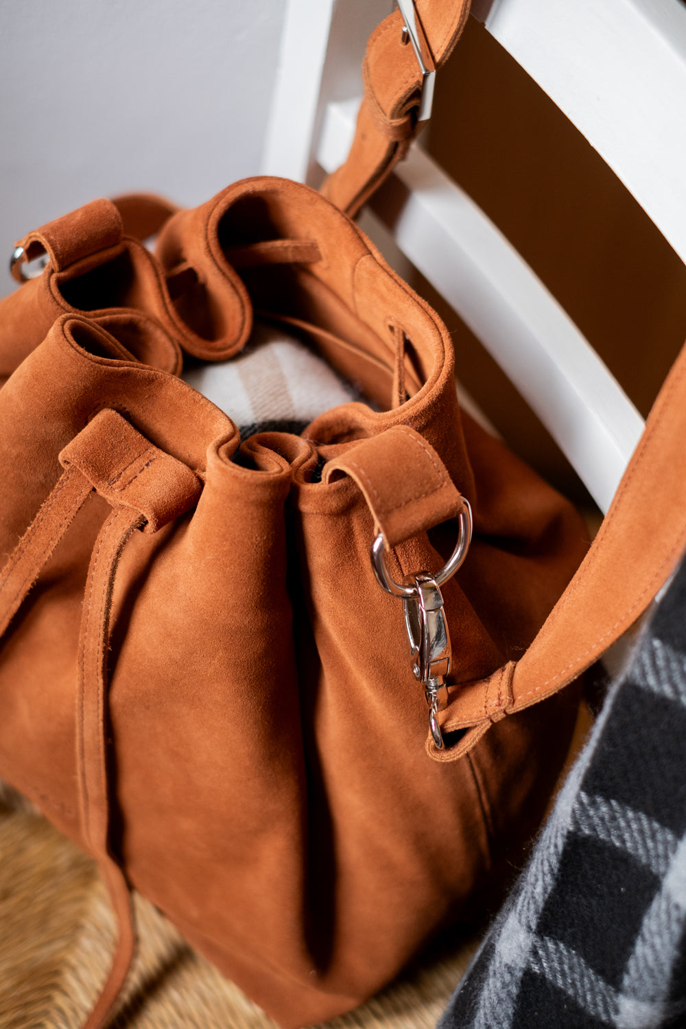 Używaj miękkiej ściereczki lub szczoteczki i dedykowanego impregnatu do skór naturalnych. Unikaj kontaktu z wodą i nadmiernej ekspozycji słonecznej.