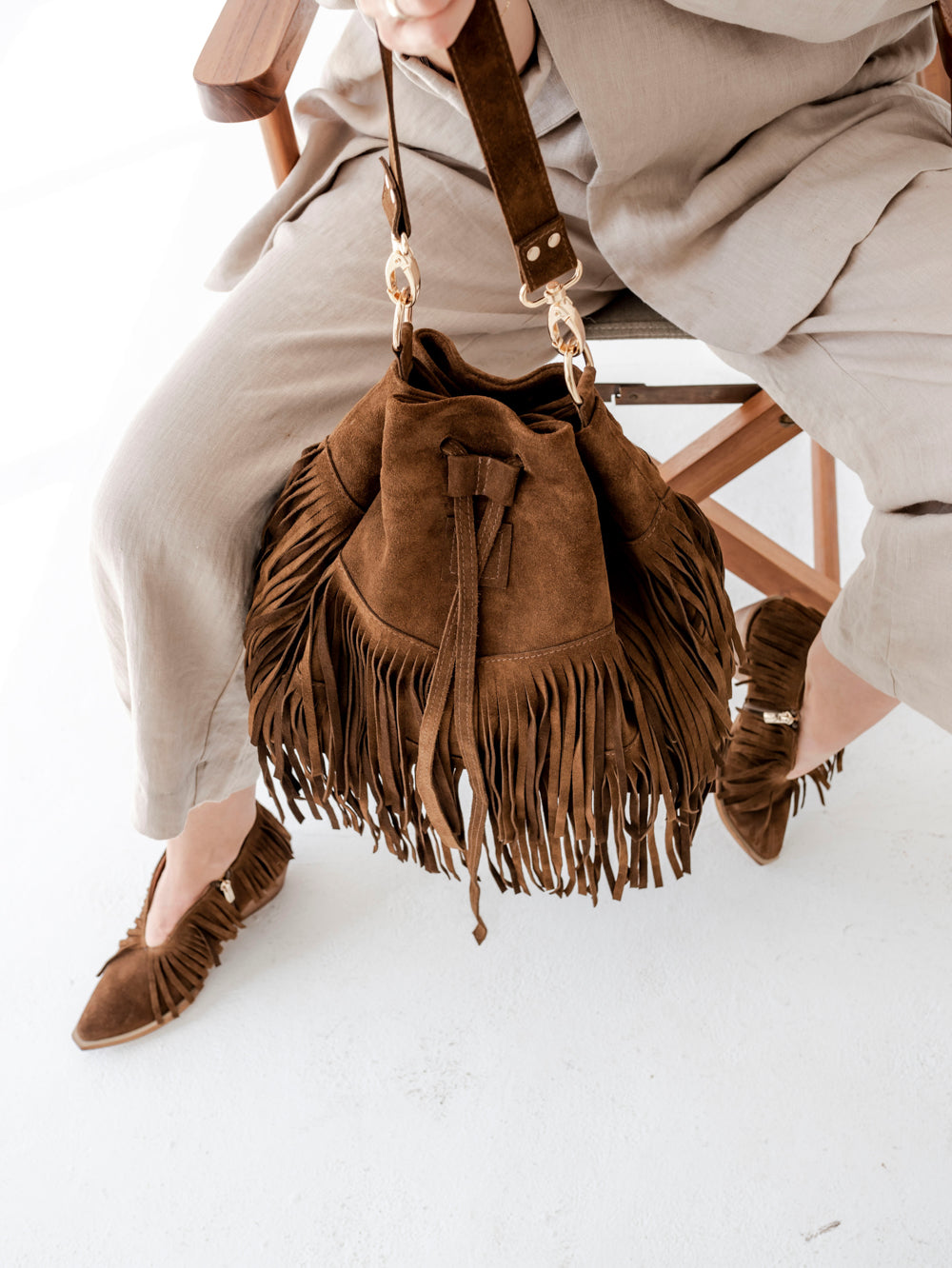 Worek zamszowy SIGARO BOHO 4 rzędy frędzli [kolekcja wspomnień]
