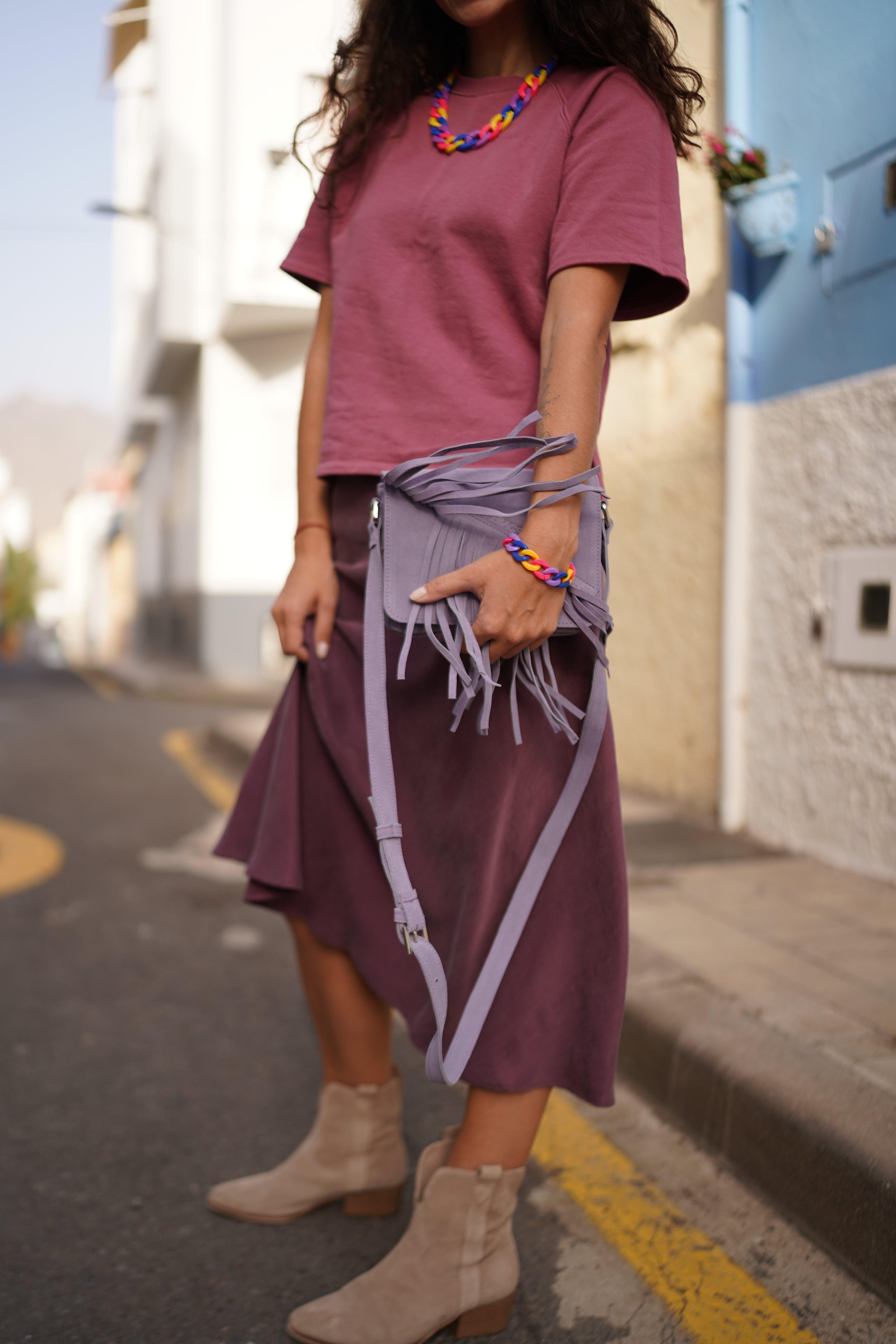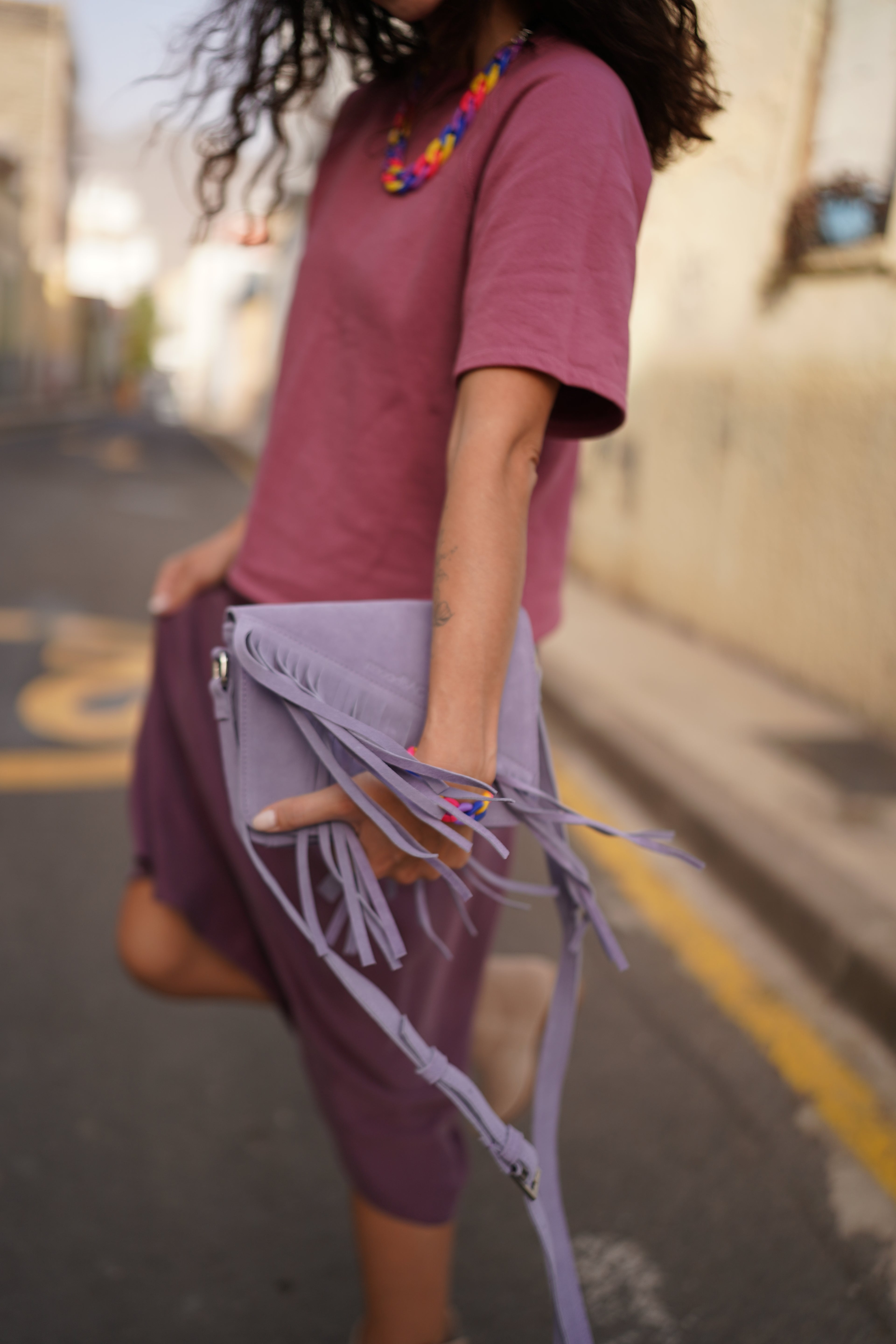 Zamszowa kopertówka BOHO LILA [kolekcja wspomnień]