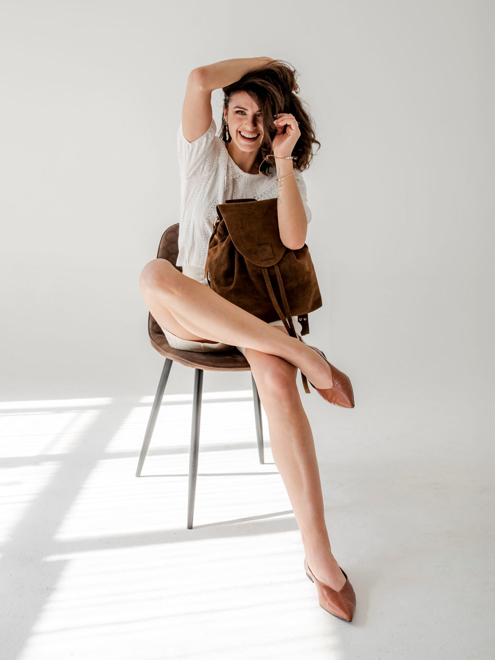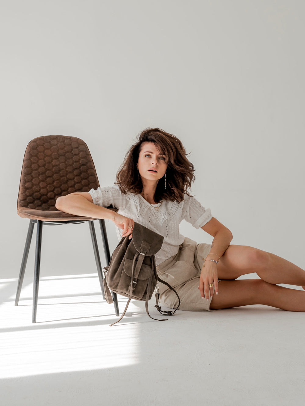 Plecak zamszowy mini z jedną kieszenią TAUPE [kolekcja wspomnień]
