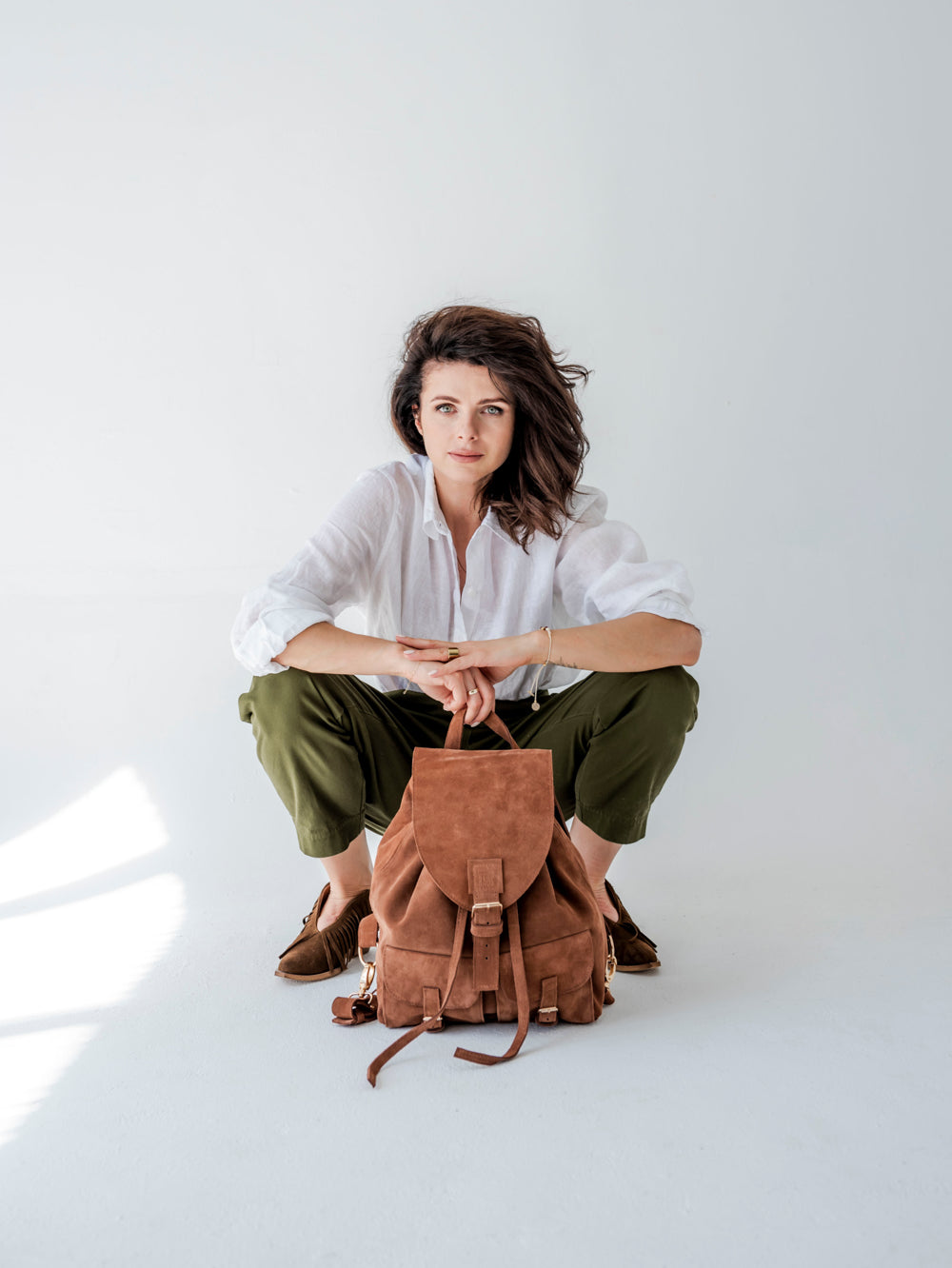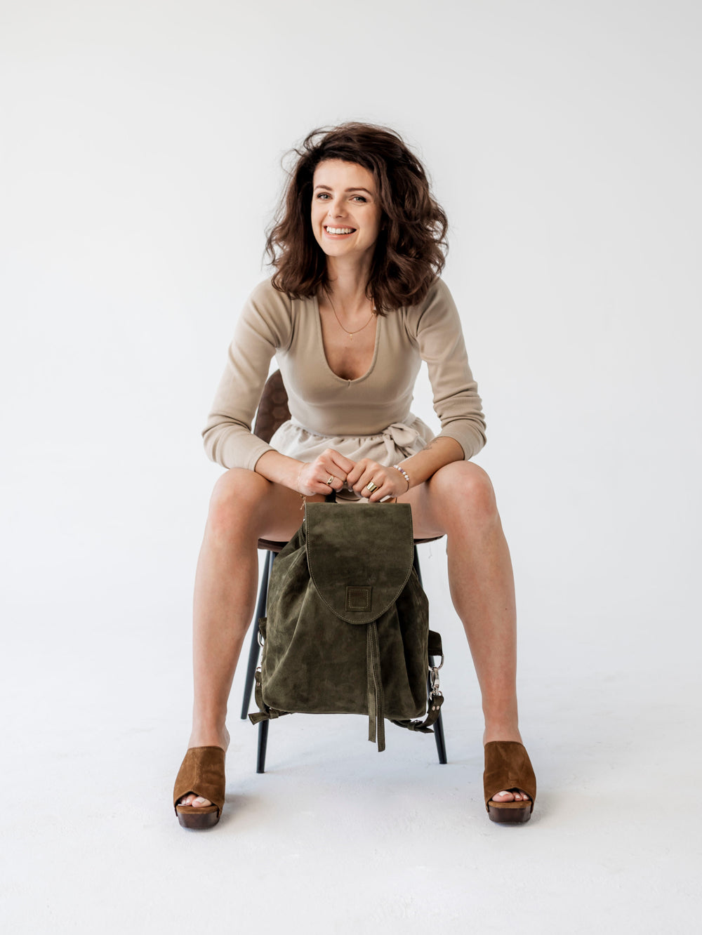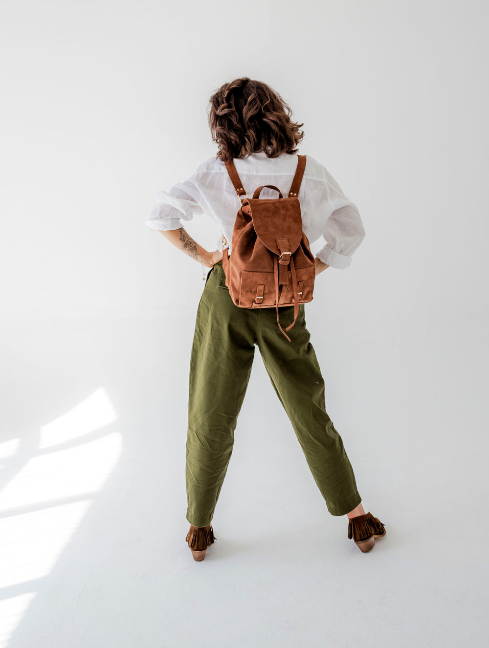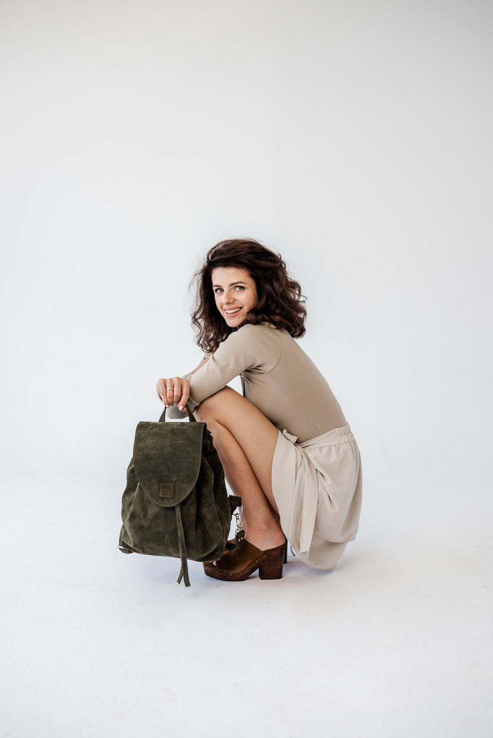 Plecak zamszowy klasyczny duży KHAKI [kolekcja wspomnień]