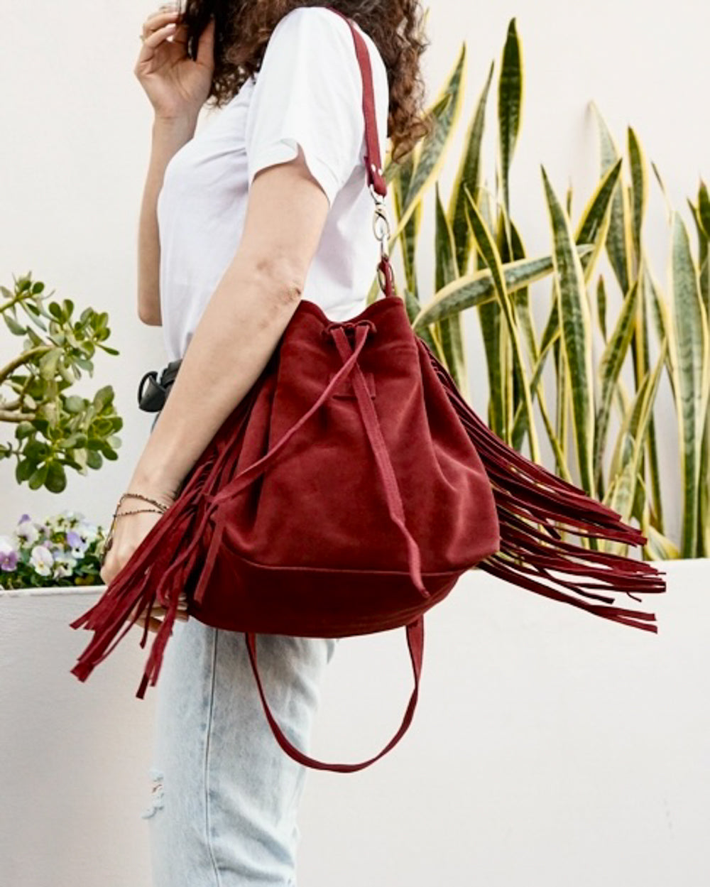 Worek zamszowy BORDO BOHO boczne frędzle [kolekcja wspomnień]