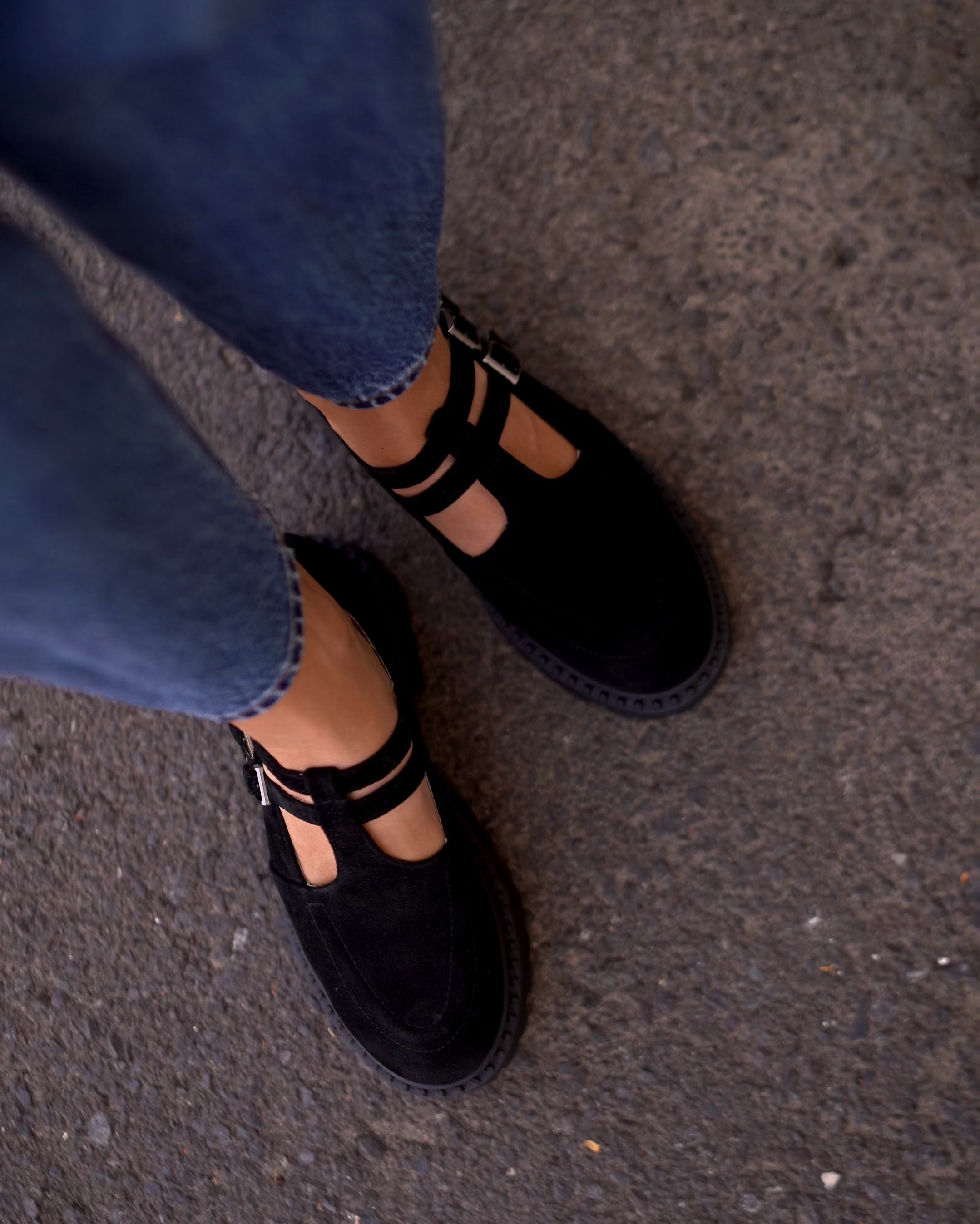 Model wyposażony jest w regulowane paseczki, które zapewniają idealne dopasowanie do stopy, a także subtelne okucia w kolorze czarnego niklu, dodające całości nowoczesnego wyrazu. Naturalna wyściółka i wkładka w jasnym odcieniu dbają o komfort noszenia, a kontrastująca czarna podeszwa nadaje mokasynom wyrazistości i lekko rockowego akcentu.