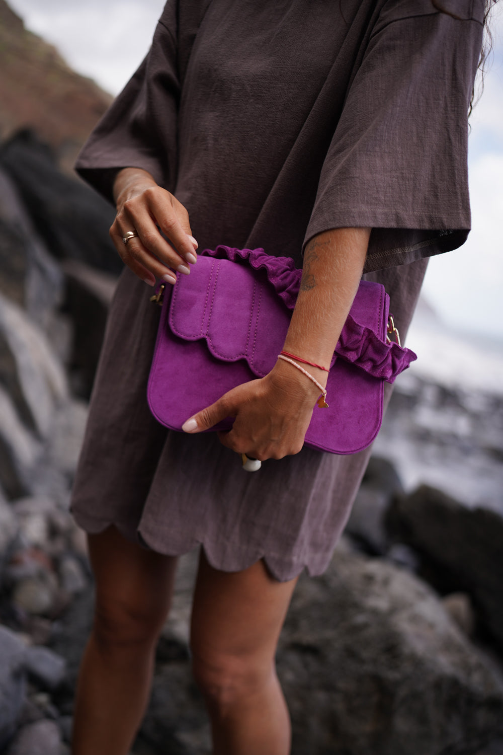 Używaj miękkiej ściereczki lub szczoteczki i dedykowanego impregnatu do skór naturalnych. Unikaj kontaktu z wodą i nadmiernej ekspozycji słonecznej.