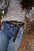 Skórzany pasek z poprzeczną szlufką GRANO CHOCOLATE
