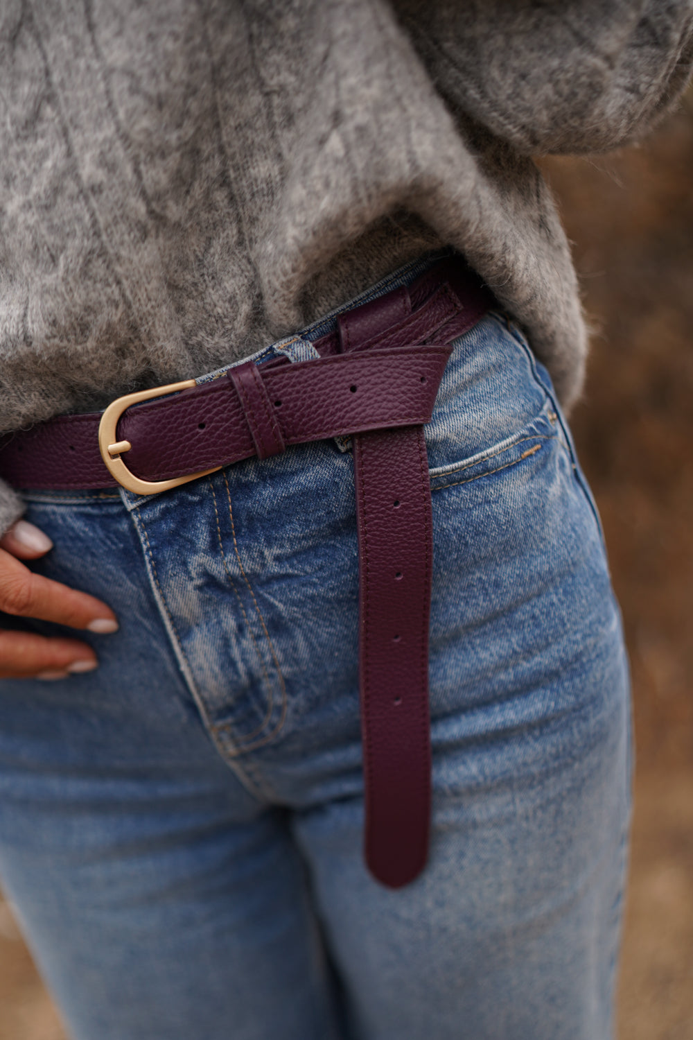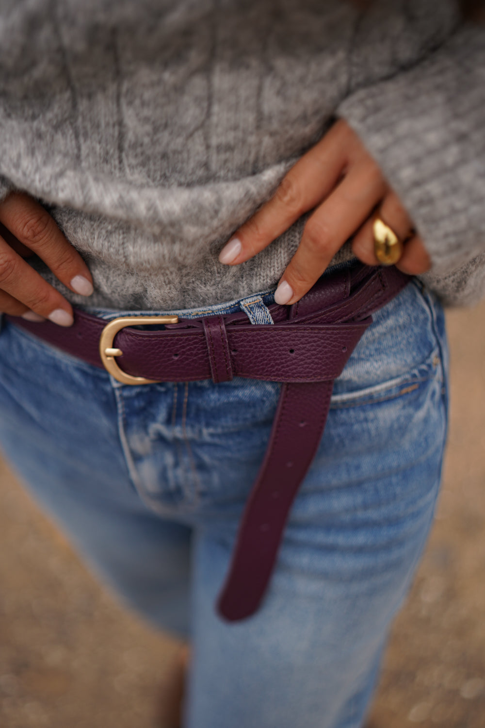 Skórzany pasek z poprzeczną szlufką GRANO GRAPE