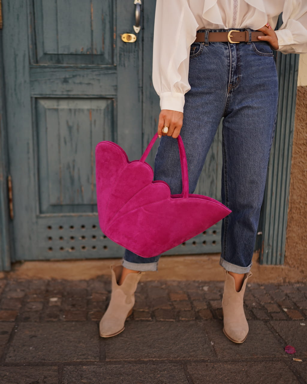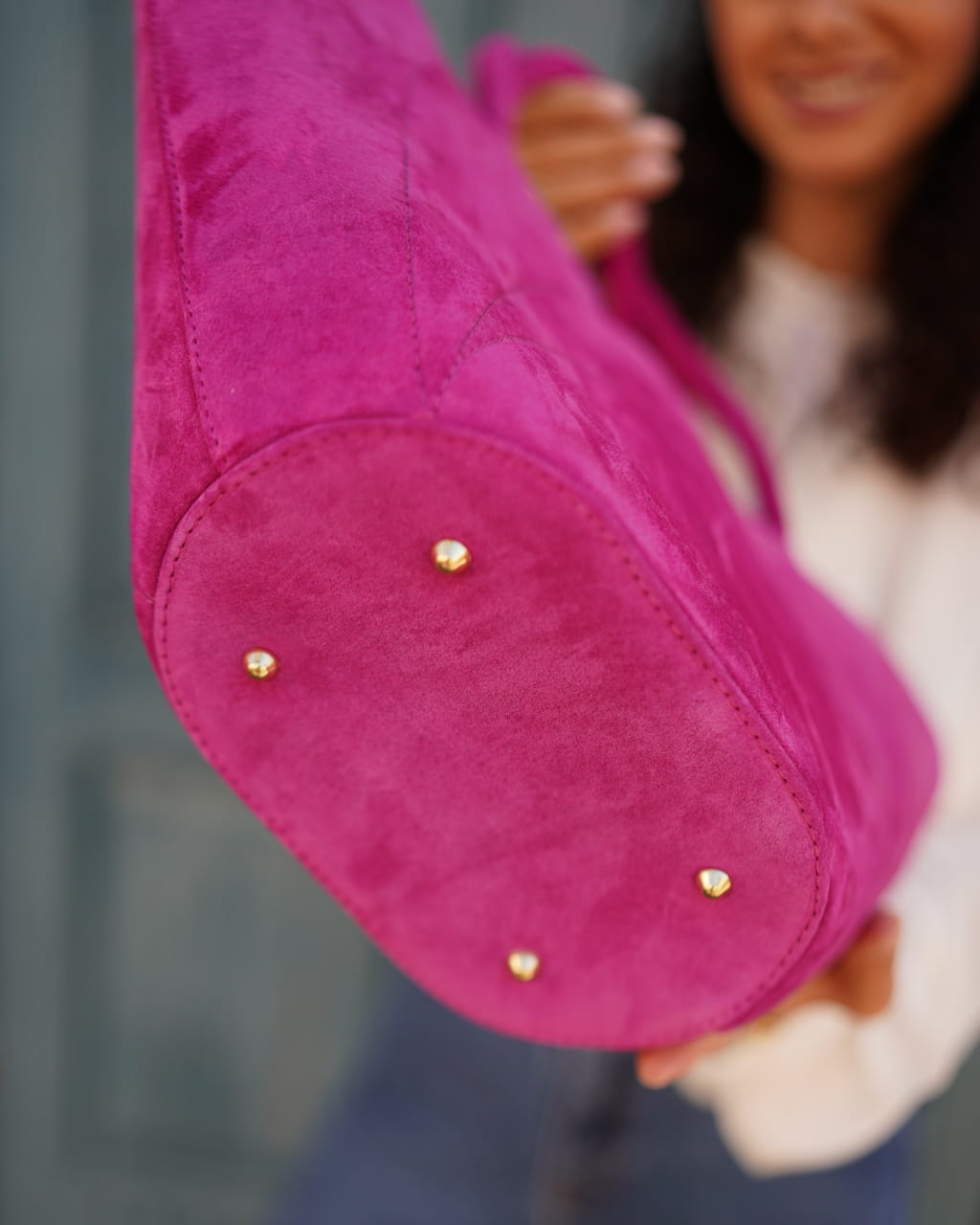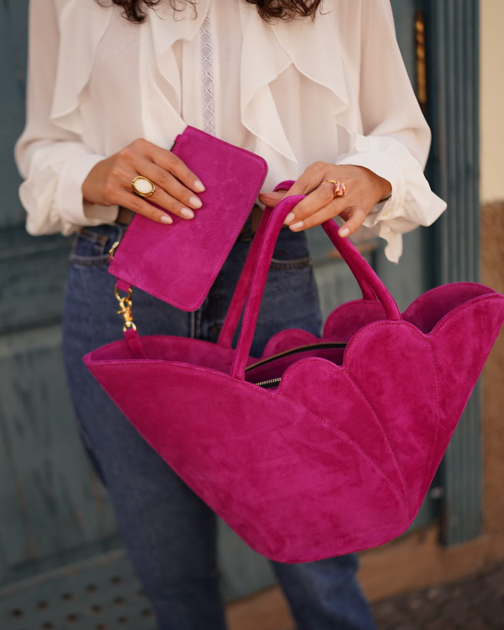 FLORES MAGENTA zamszowa shopperka z zamkiem