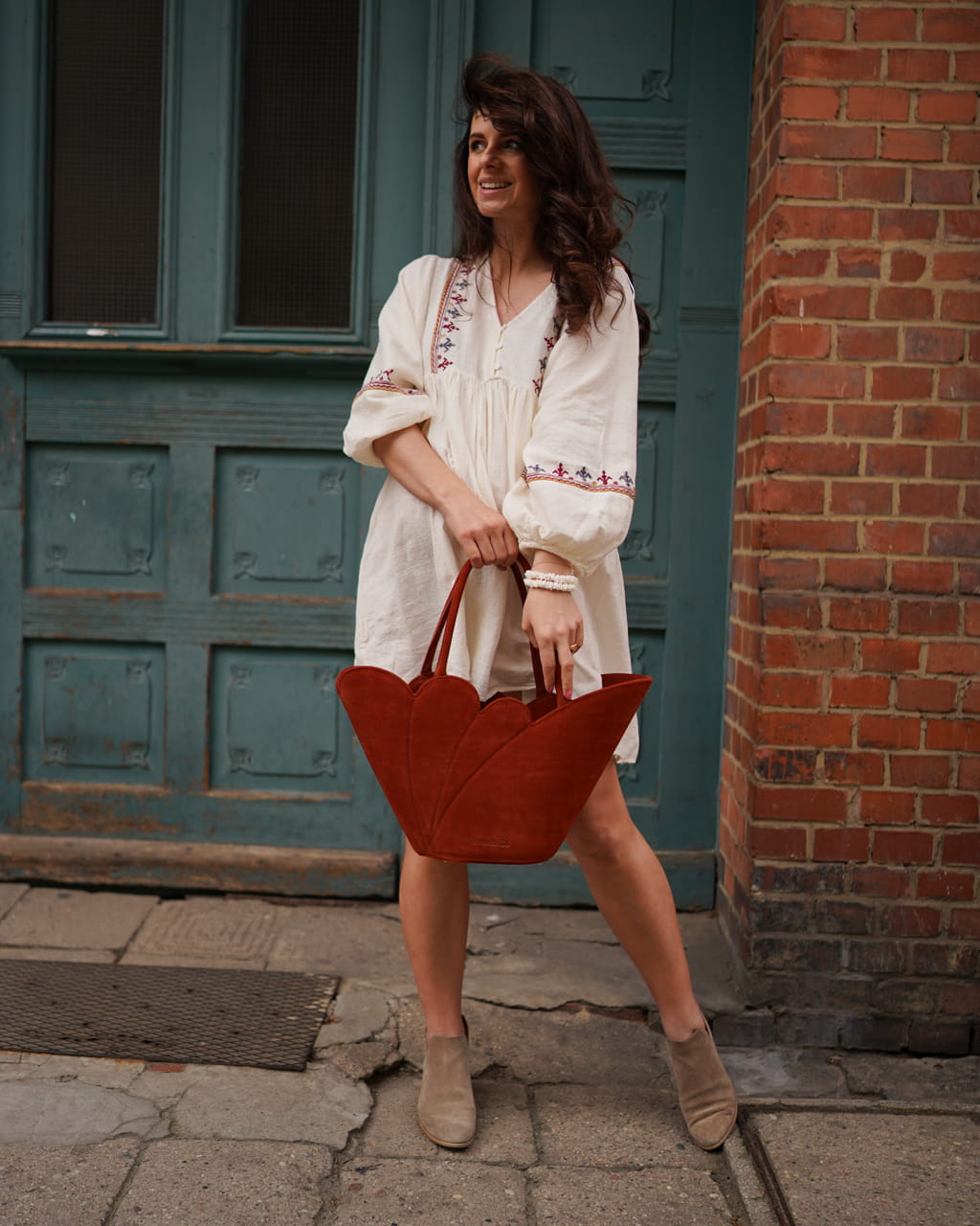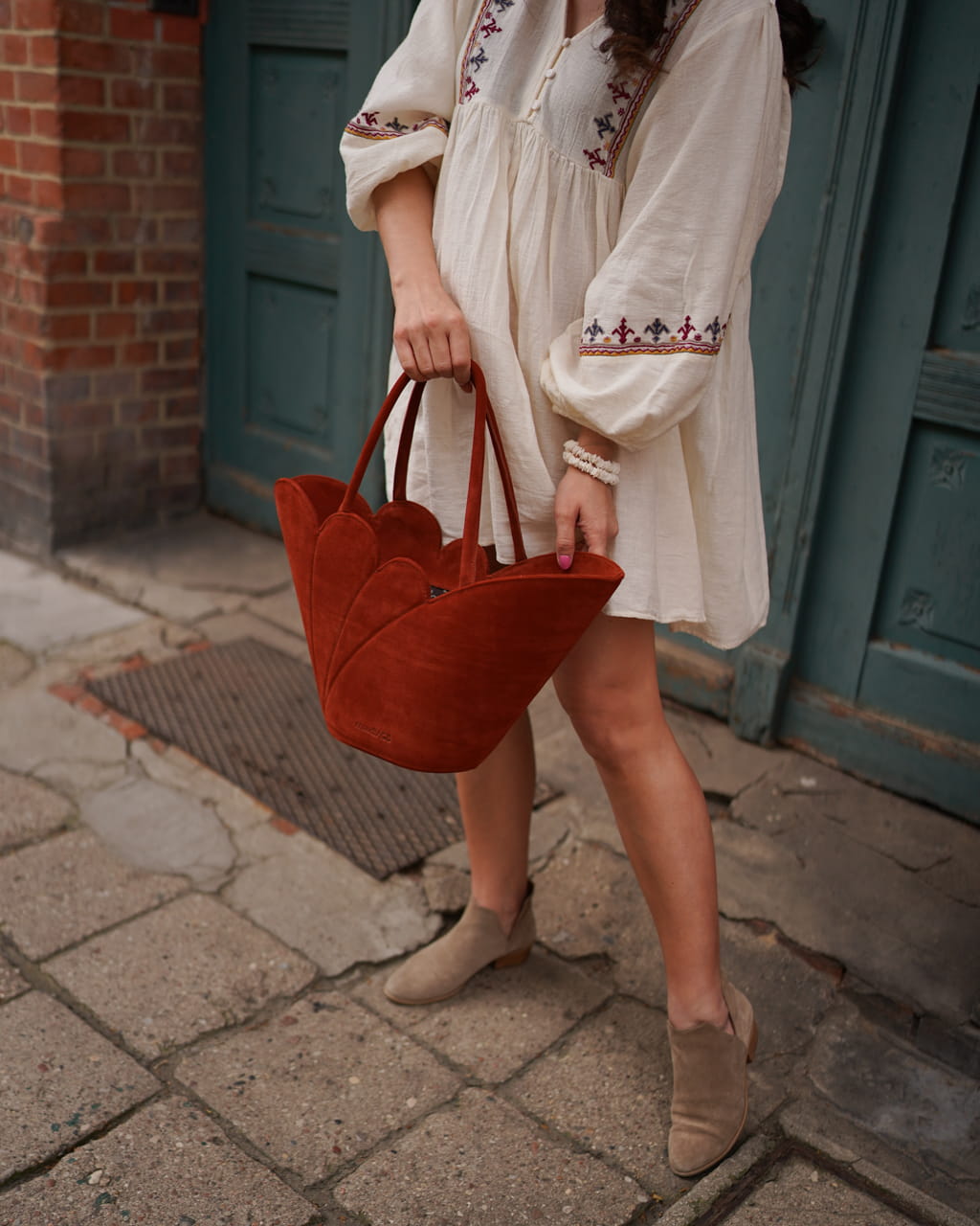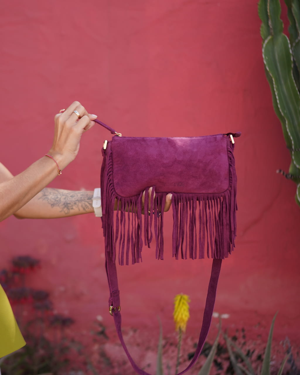 FLORES MAGENTA zamszowa shopperka z zamkiem