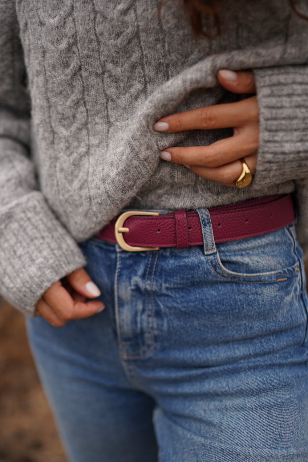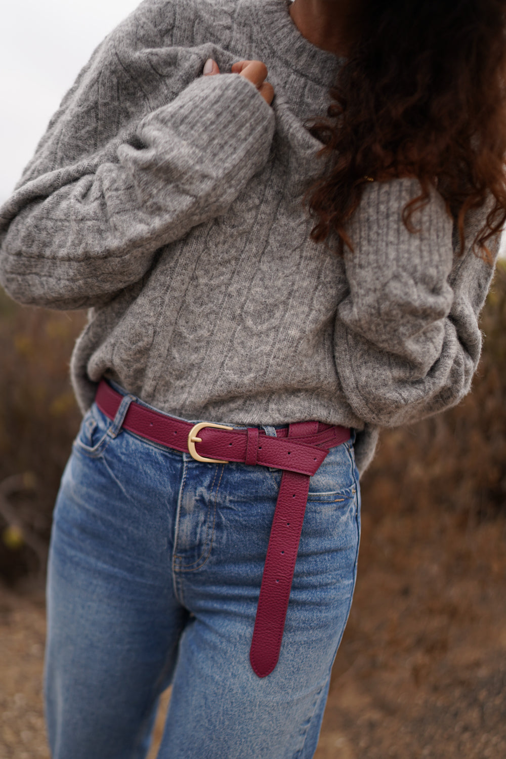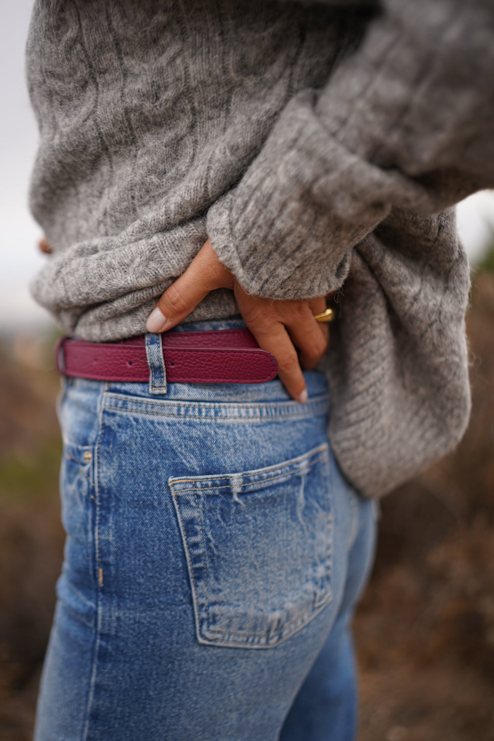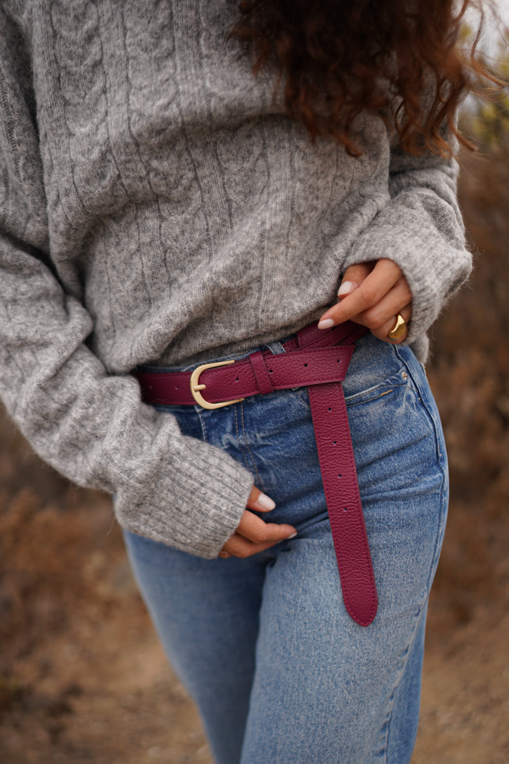 Skórzany pasek z poprzeczną szlufką GRANO CARDINAL