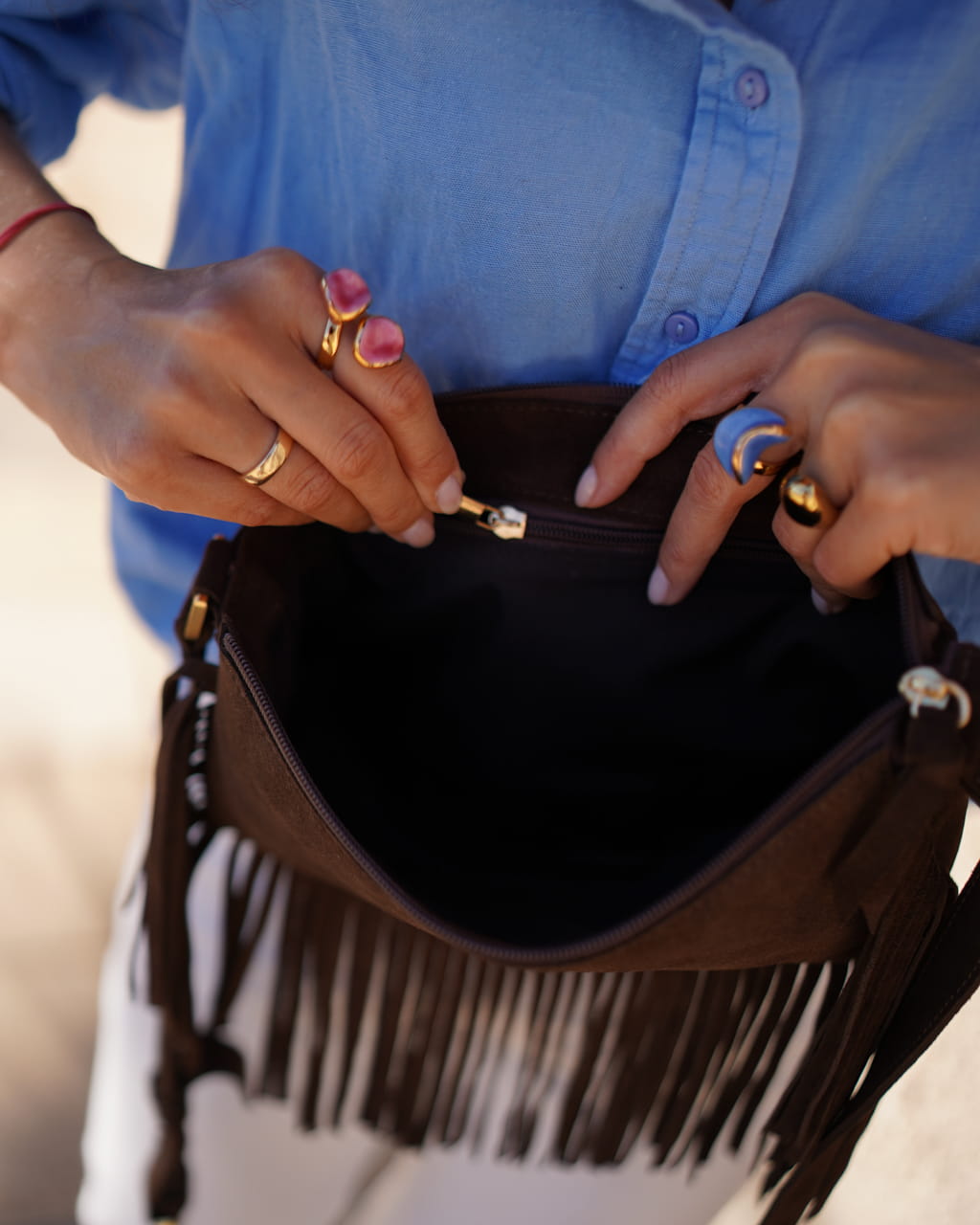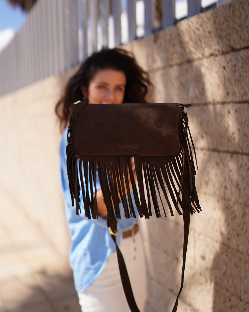 DEEP CHOCO CAROLA skórzana zamszowa torebka